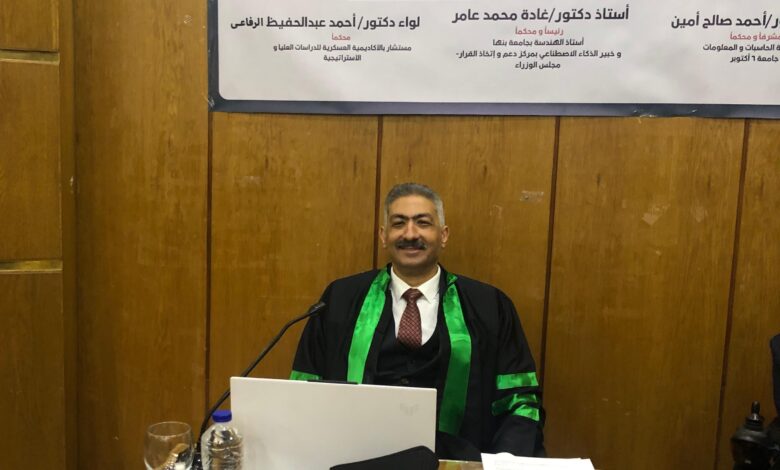 وجاءت الرسالة تحت إشراف الأستاذ الدكتور أحمد صالح أمين، وكيل كلية الحاسبات والمعلومات بجامعة 6 أكتوبر، وخبير الأمن السيبراني.