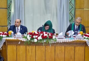وترأست لجنة المناقشة والحكم الأستاذة الدكتورة غادة محمد عامر، أستاذ الهندسة بجامعة بنها، وخبيرة الذكاء الاصطناعي بمركز دعم واتخاذ القرار بمجلس الوزراء، وضمت في عضويتها كلًّا من: