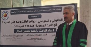 وفي ختام المناقشة، أجازت لجنة الحكم الرسالة ومنحت الباحث درجة الماجستير بتقدير ممتاز، مشيدةً بما قدّمه من تحليل علمي ورؤية استراتيجية تُسهم في إثراء الدراسات القانونية والسياسية، وتواكب التحولات العالمية في مجال الأمن السيبراني.