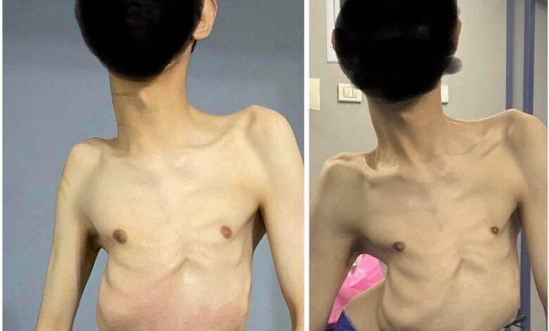 ظل محمد يعاني لسنوات طويلة من هذا الاعوجاج دون تدخل جراحي، حيث تطورت حالته إلى مرحلة انضغاط الضلوع داخل الحوض، مما تسبب له في نقص شديد في الوزن، وصعوبة بالغة في تناول الطعام، إضافة إلى تدهور وظائف التنفس التي بلغت 24% فقط – وهي نسبة أقل بكثير من الحد الأدنى الآمن (40%) لإجراء جراحة من هذا النوع.