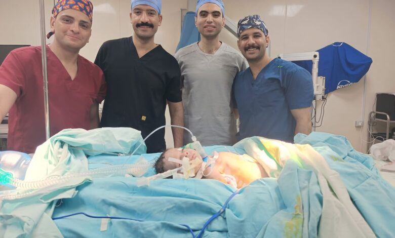 وأضاف أن العملية شملت أيضًا تركيب أنبوبة معدية لضمان التغذية السليمة للطفل، في ظل صعوبة الرضاعة الطبيعية أو الصناعية.