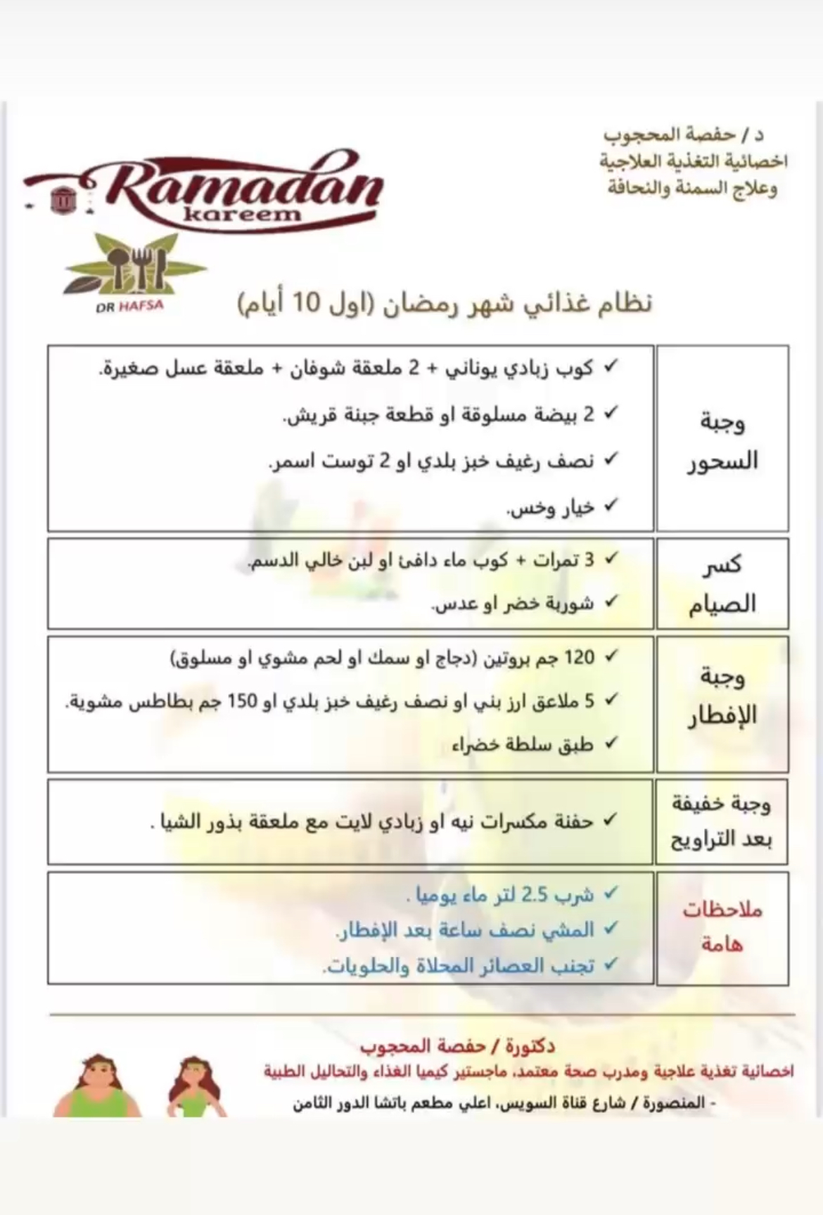 د. حفصة المحجوب تنشر الكبسولة الذهبية لنظام غذائي صحي في شهر رمضان الكريم