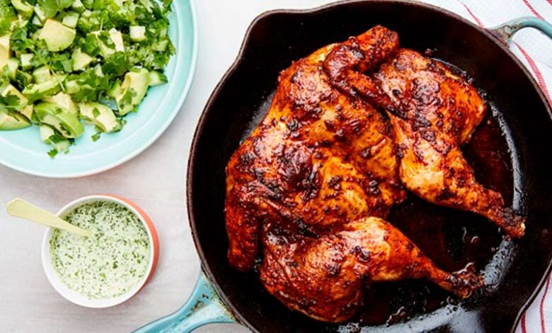 2. **التتبيل:** يتم خلط التوابل ووضع ثلاثة أرباع الكمية على الدجاج مع ملعقة كبيرة من زيت الزيتون، مع التأكد من إدخال التتبيلة تحت الجلد لضمان نكهة قوية دون الحاجة لاستخدام كميات كبيرة من الصوديوم.