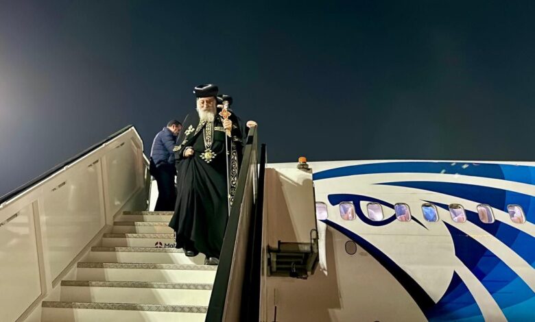 صور .. البابا تواضروس يعود من الخارج بعد إجرائه عملية جراحية